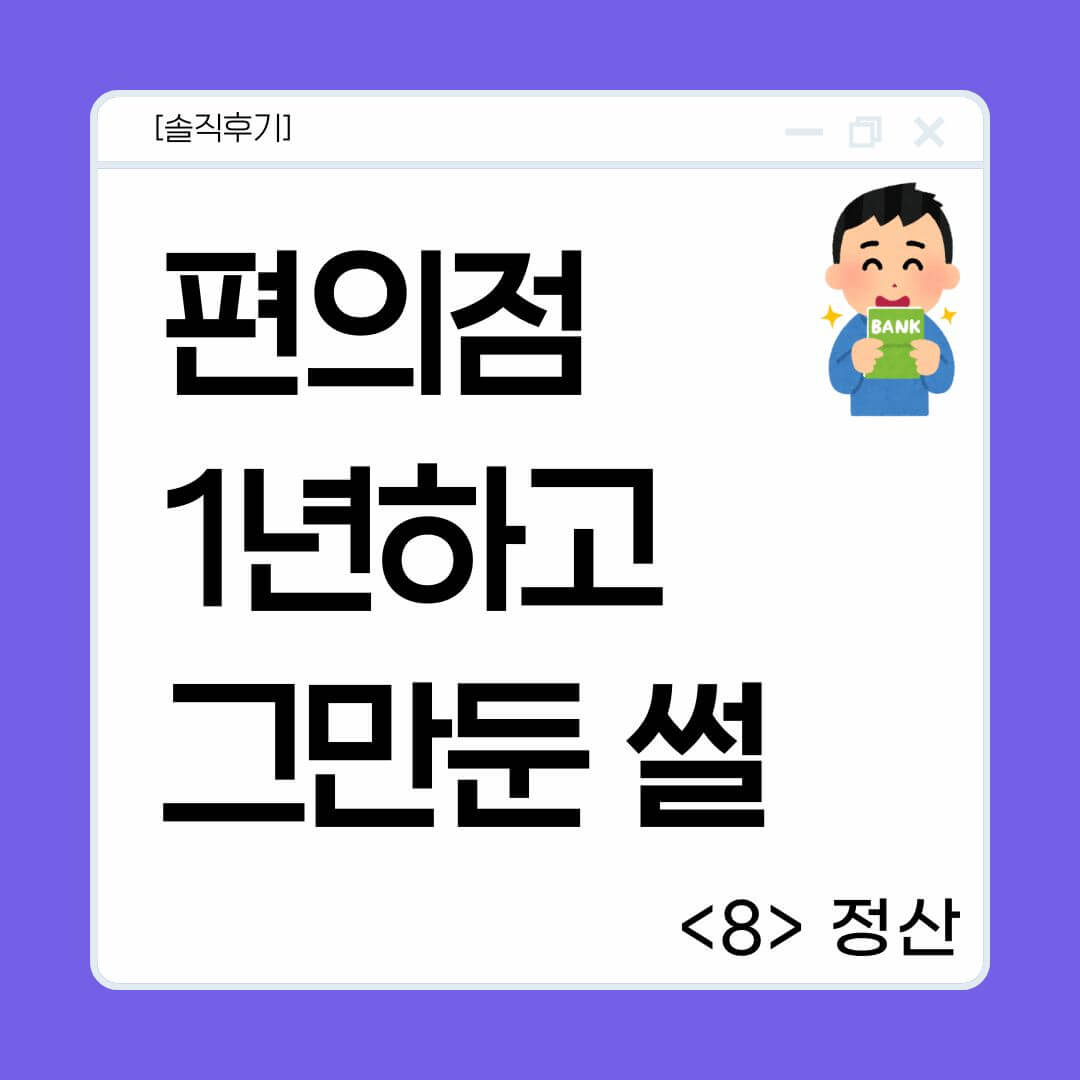 우리가 정산받았던 정산금의 반 이상은 우리가 처음 '이 정도 나온다'라고 했던 금액보다 적었다. 그런데 그 이유는 모두 편의점주의 탓이 된다. 매출이 줄었기 때문이라고. 매출이 준 이유를 코로나19나 새로운 편의점이 생겼기 때문이라는 말을 절대 하지 않는다. 교묘하게 편의점주의 탓이 되어 더 이상 어떤 말도 할 수 없게 만든다.
